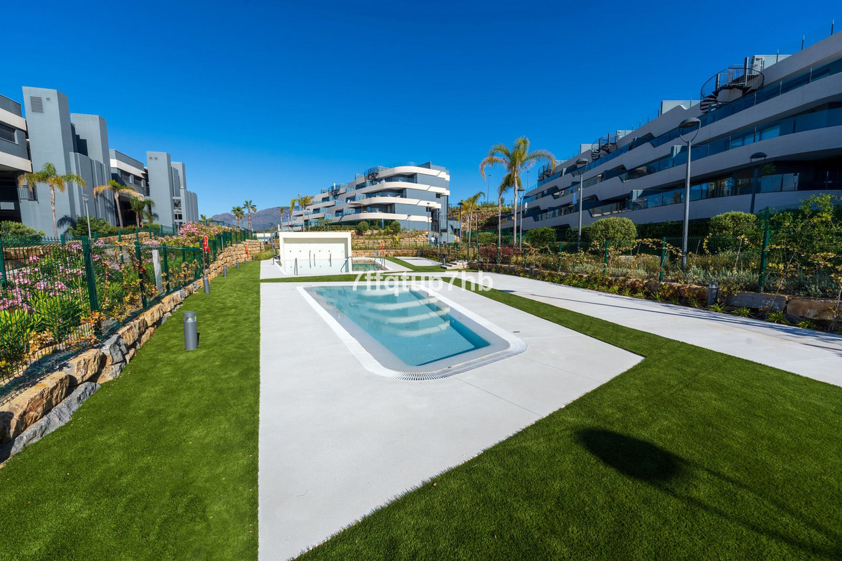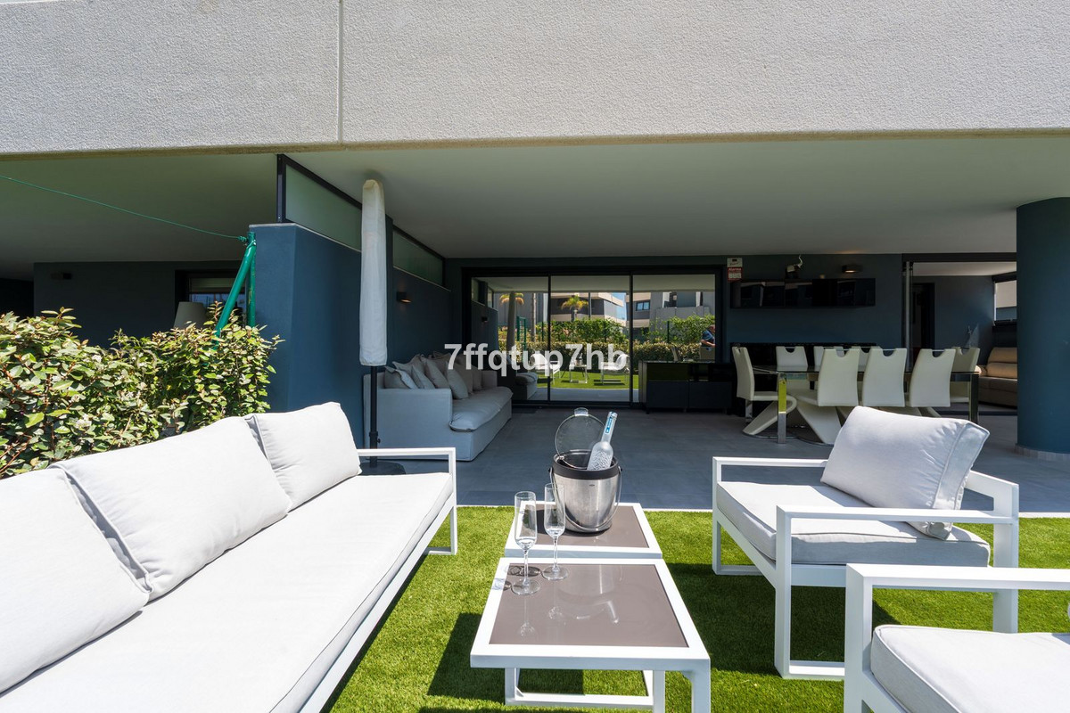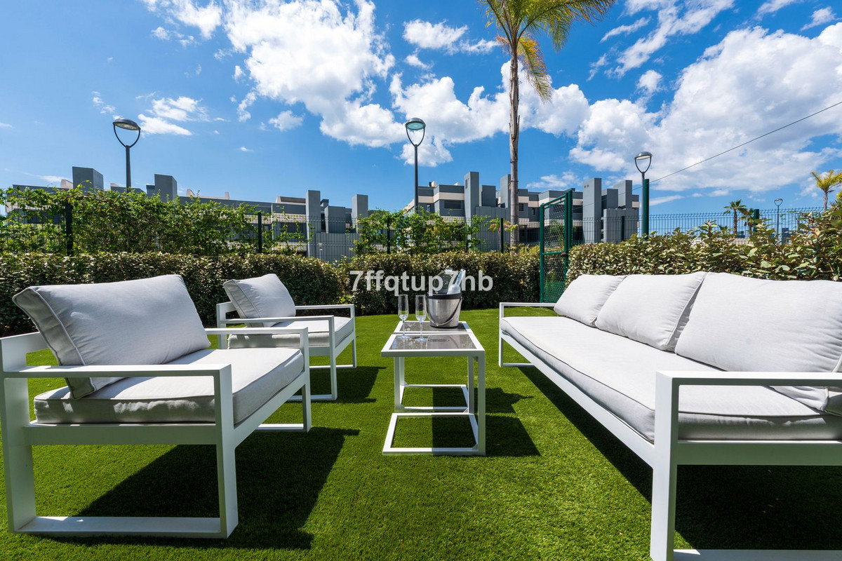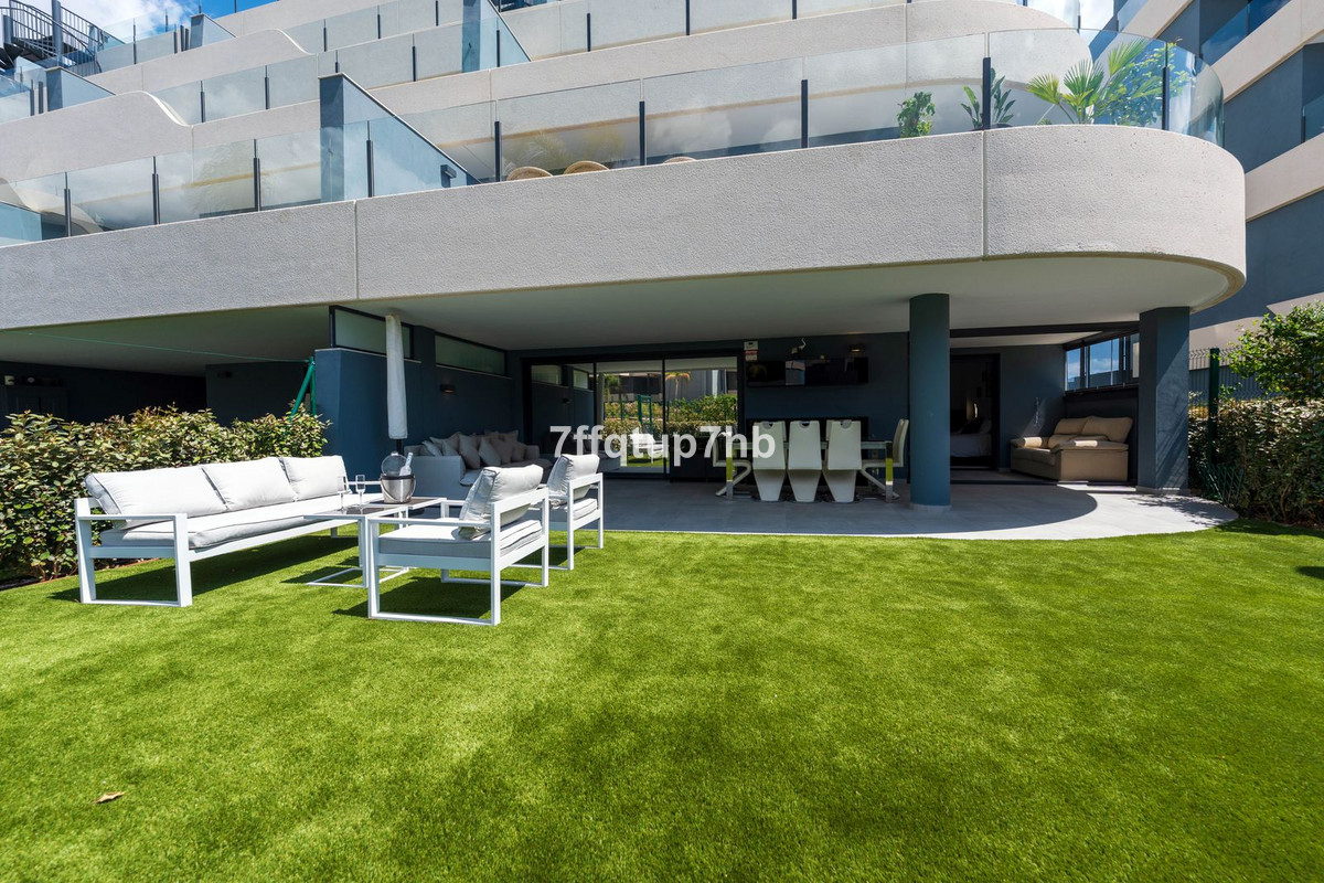 This 3-bedroom apartment features an open-plan design, seamlessly integrating a modern, fully equipped kitchen with the living area. The space opens onto a spectacular south-facing terrace and a private 80 m² garden, perfect for basking in the endless sunlight that characterizes the Costa del Sol.