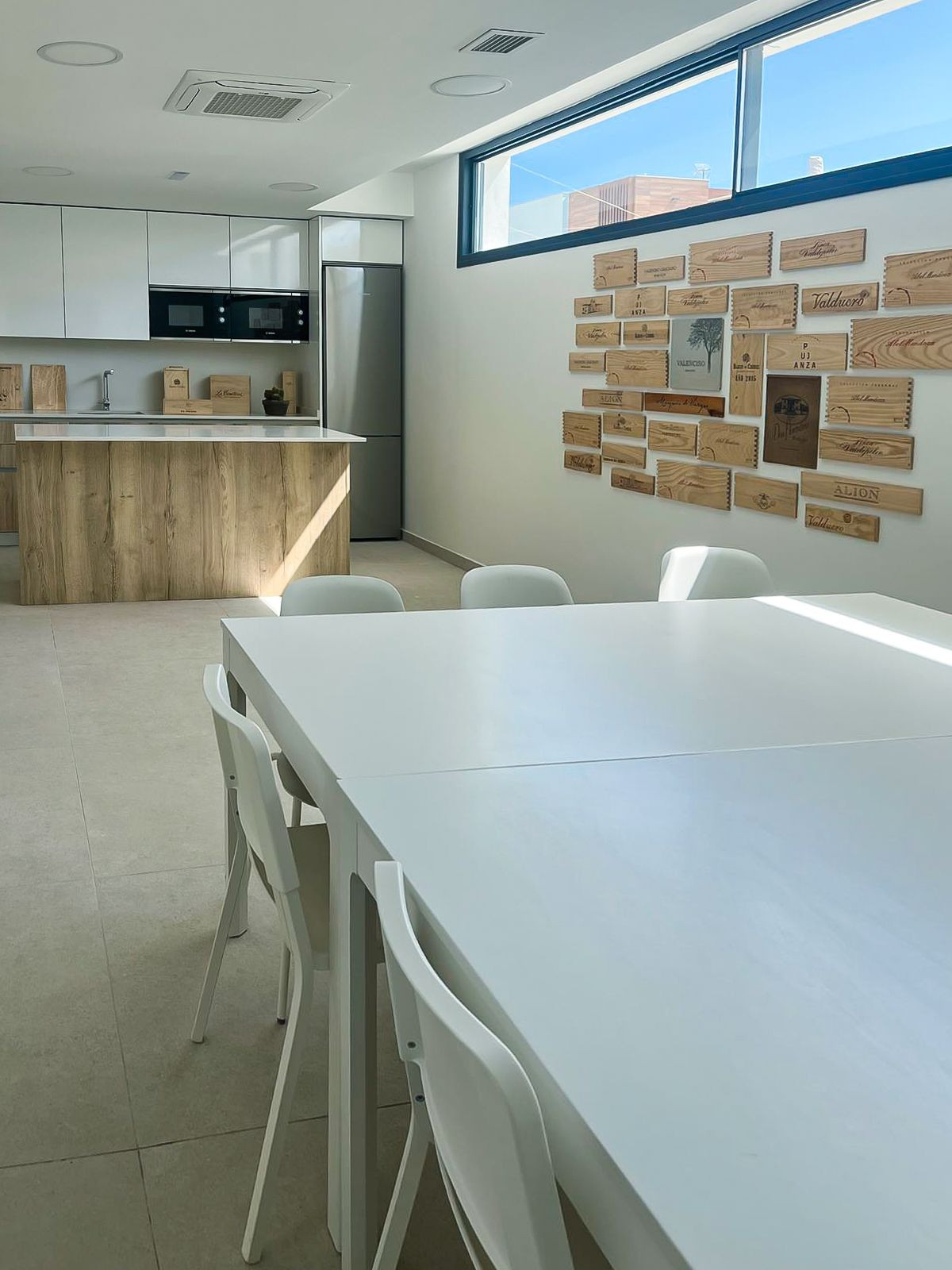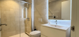 The domotic system for home automation is also installed to control the lights and electric blinds. Air conditioning and floor heating are provided though aerothermal energy. Also good to know is that the extra spacious utility room with washing and tumble dryer is just across the front door. A private underground parking space is also included in the price. The exclusive gated community offers a large outdoor pool and state of the art gym facilities, community area, game room and secure entrance.