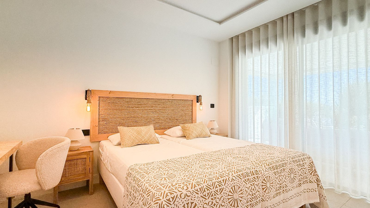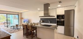 Offering 2 bedrooms and 2 bathrooms. The main bedroom has an open plan bathroom with walk-in shower, anti-fog mirrors, electric towel racks and extra wardrobes. A fully equipped and open plan kitchen with all Bosch appliances and spacious living dining area.