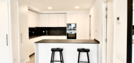 The open-plan living area with a modern kitchen opens onto a spacious private terrace — perfect for enjoying the Mediterranean lifestyle.