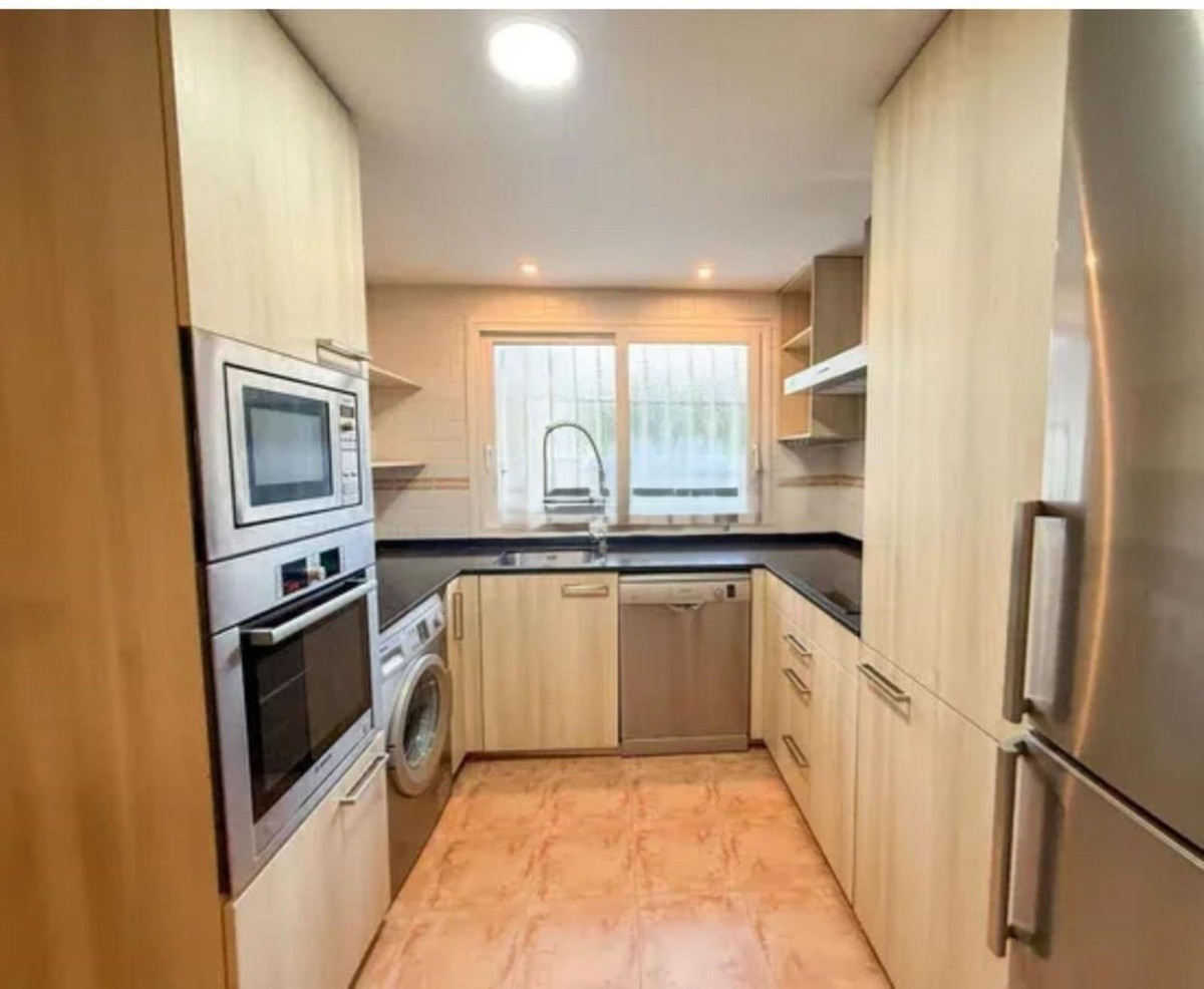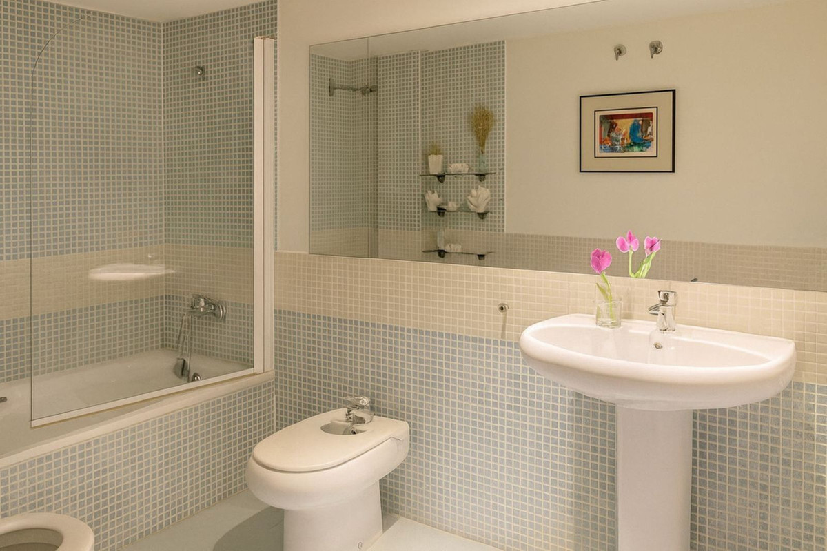 Two-bedroom flat located in the attractive Guadalmina Baja complex. Situated in a secure gated community, this flat also enjoys communal tropical gardens, a swimming pool and the convenience of being within walking distance of the beach, shops, restaurants and other local amenities.