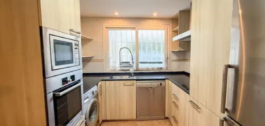 The flat has a practical layout: the kitchen is on the left, fully equipped with good quality appliances, ideal for everyday use.