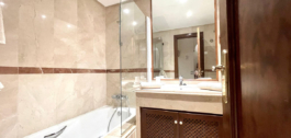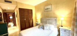 This elegant two-bedroom apartment is located in the exclusive Alicate Playa development in Marbella, just a few steps from the beach. It features a living-dining room with access to a terrace overlooking the pool, a fully equipped kitchen with a separate laundry room, two bedrooms (the master with an en-suite bathroom and terrace), marble floors, air conditioning, and a parking space.