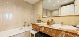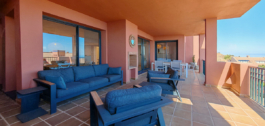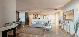 Ground Floor Apartment for sale in , Mijas Costa with 3 bedrooms, 2 bathrooms, 1 on suite bathroom and 1 toilet, with communal swimming pool and private garage (1 parking spaces). Regarding property dimensions, it has 109.7 m² built and 42.19 m² terrace. Has the following facilities mountainside, amenities near, transport near, air conditioning, fully fitted kitchen, fireplace, marble floors, double glazing, guest toilet, sea view, country view, covered terrace, fitted wardrobes, gated community, lift, garden view, panoramic view, street view, close to children playground, close to golf, balcony, excellent condition and close to schools.