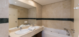 Accessed either by taken the elevator to the floor or by entering through glass security doors. This beautifully presented elevated apartment has a 1 spacious double bedroom with fully fitted wardrobes and 1 extremely spacious master bathroom complete with a jacuzzi bath and stand alone shower.