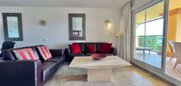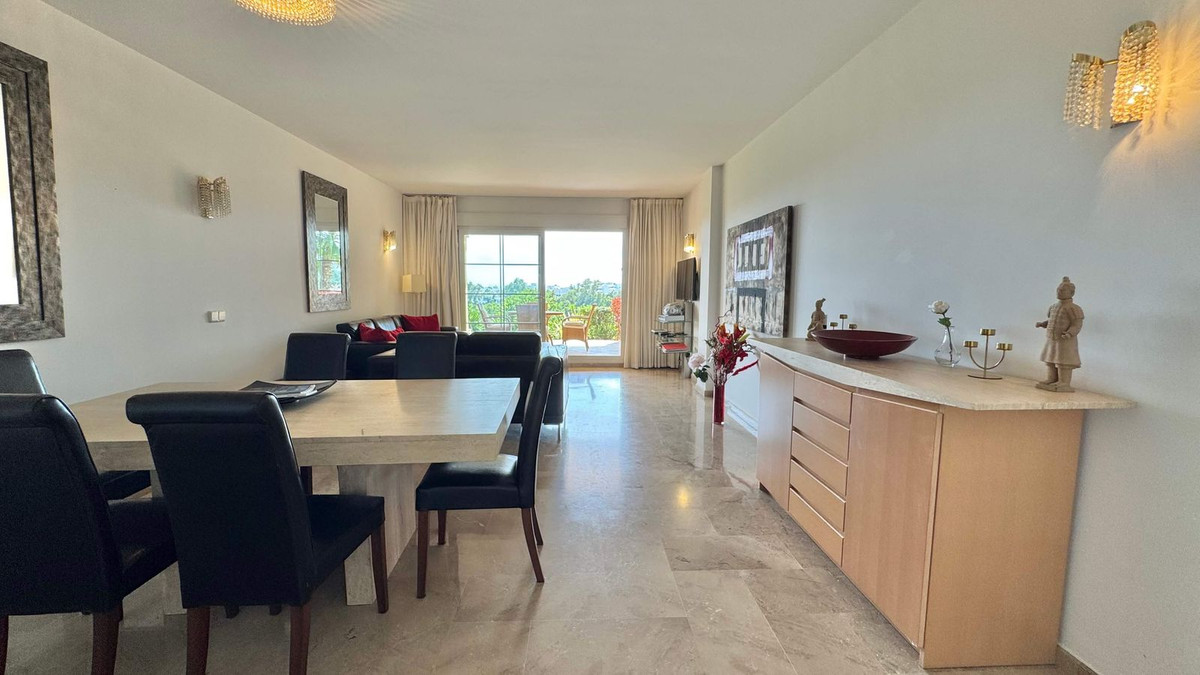 This two-bedroom flat with two underground parking spaces in Cumbres del Rodeo is being sold fully furnished at €585,000 excluding purchase costs.