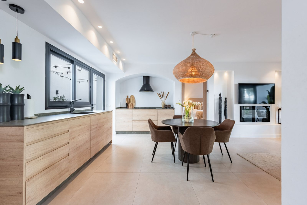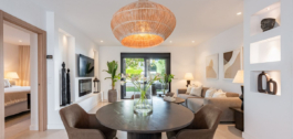 Welcome to this stylish and fully renovated ground-floor apartment located in the highly sought-after Andalucía Garden Suites, one of the most established and popular residential communities in Nueva Andalucía. The apartment features two tastefully decorated bedrooms and two modern bathrooms, all within an open-plan layout and furnished with carefully selected designer pieces that create a harmonious and elegant atmosphere.