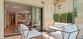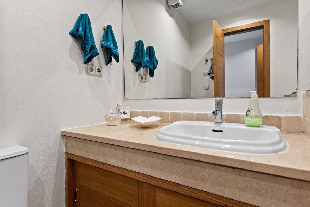 This Two Bedroom Corner Garden Apartment has a great private terrace with glass curtains, while a private garden offers you a tranquil oasis for relaxation. Urb. Pueblo del Rio is nestled on the banks of the Rio Real and surrounded by the majestic Sierra Blanca mountain peaks, is renowned as one of the most picturesque urbanizations in Marbella. Only seconds to one of the best beaches on the coast and minutes from the main city centre of Marbella and shopping center La Cañada.