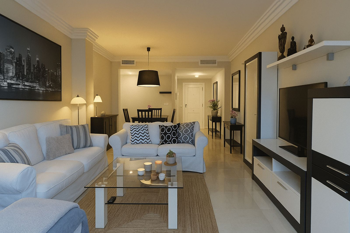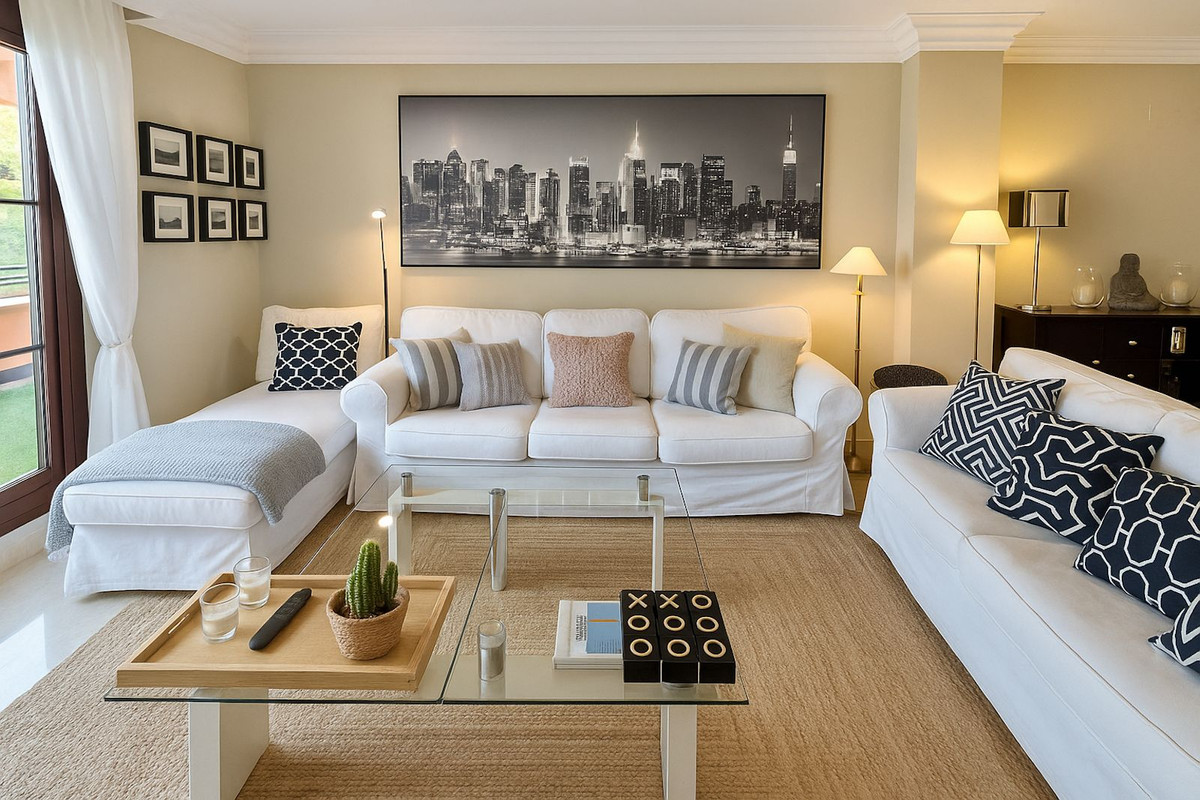This impressive apartment, is localed in the Gazules del Sol urbanization in the municipality of Benahavis, a gated community with 24-hour security, offers an unparalleled lifestyle. It features three bedrooms, two bathrooms, and a spacious living room that opens onto a large terrace. The separate kitchen with a utility room is perfect for food lovers. The complex offers four outdoor pools, a heated indoor pool, a sauna, and paddle tennis and tennis courts to keep you active. The community gardens are excellently maintained, creating a green and serene environment. It is surrounded by the most prestigious golf courses on the Costa del Sol, such as Guadalmina, Los Flamingos, La Quinta, and Atalaya Country Club. Within walking distance of the beach and all amenities, including restaurants, supermarkets, and several international and prestigious schools on the Costa del Sol, it's perfect for those looking to combine luxury and comfort. It includes one parking spaces and a storage room, as well as marble floors and air conditioning with hot/cold pump for your comfort. Built in 2008, this apartment is located on the first floor, south-facing, and is in excellent condition. Don't miss the opportunity to live in this oasis of tranquility and luxury on the Costa del Sol.