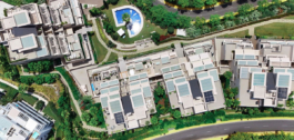 Residents have access to beautifully maintained gardens, multiple outdoor pools, a heated indoor swimming pool, a fully equipped gym, sauna, and Turkish bath, all designed for maximum comfort and wellness.
