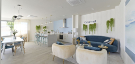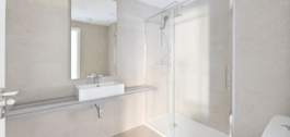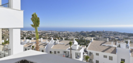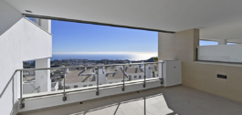 The property has 3 bedrooms with fitted wardrobes and 2 full bathrooms, one of which is en suite in the master bedroom, a living room leading to a large 24.88 m² south-facing terrace with unobstructed sea views.
