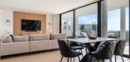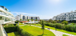 Elegant south-west facing apartment, in the exclusive urbanization of Higuerón West, with 3 bedrooms, 2 bathrooms and one guest toilet, spacious living-dining room, open plan kitchen fully furnished and equipped with electrical appliances from BOSCH, laundry area with washing machine/dryer, large terrace of 54m2 with pool and garden views.