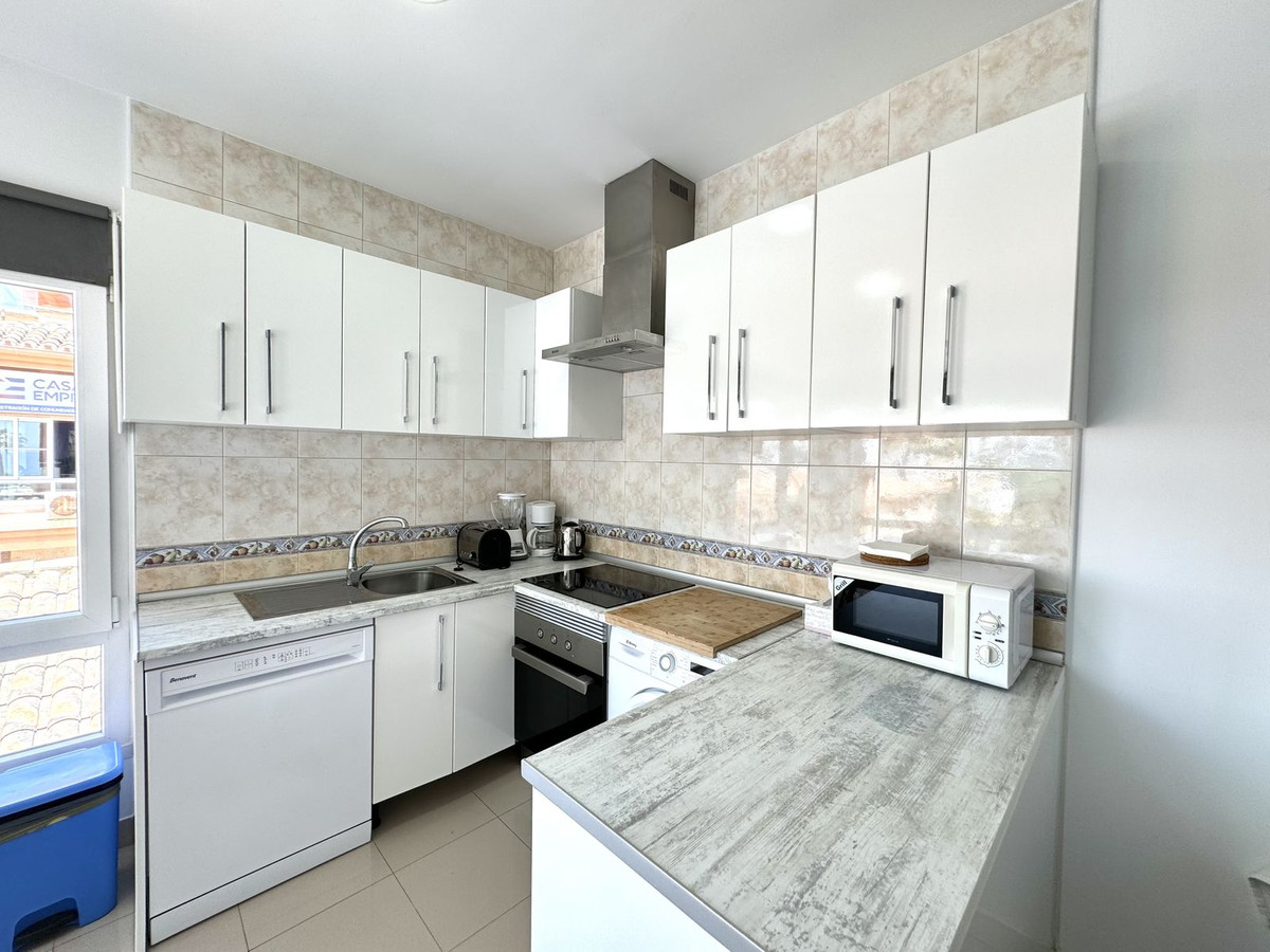 Situated on the central Avenida Las Palmeras, this bright and spacious middle-floor apartment offers the perfect combination of comfort, convenience, and coastal living. Just 50 meters from the beach and within easy walking distance of Parque de la Paloma, Puerto Marina, bus stops, shops, restaurants, and all local amenities, the location is truly exceptional.
