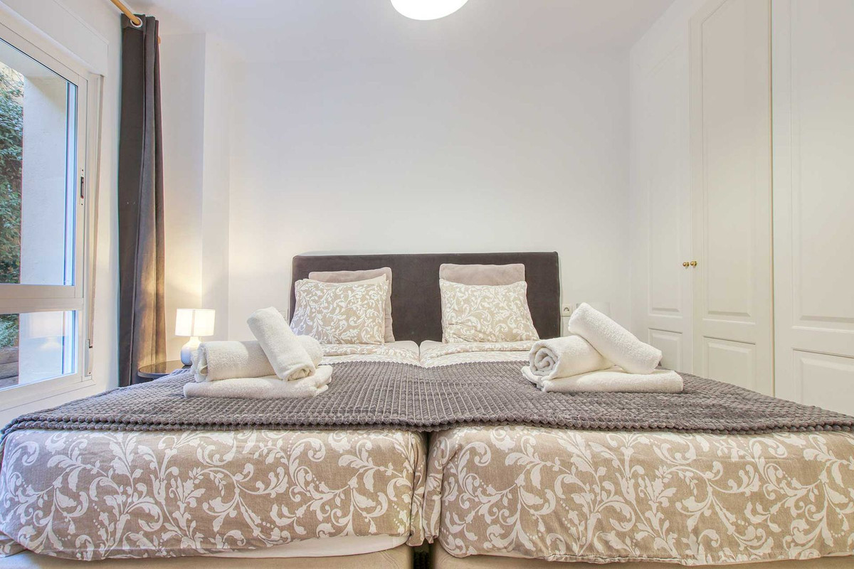 This two-bedroom apartment is located in the Princess Park complex in Calahonda, on the beautiful Mijas Costa. It offers comfortable living space with a bright living room, a fully equipped kitchen, and a pleasant terrace to enjoy the Mediterranean climate. Both bedrooms are spacious, and the residence has communal swimming pools and gardens, providing a secure and elegant setting.