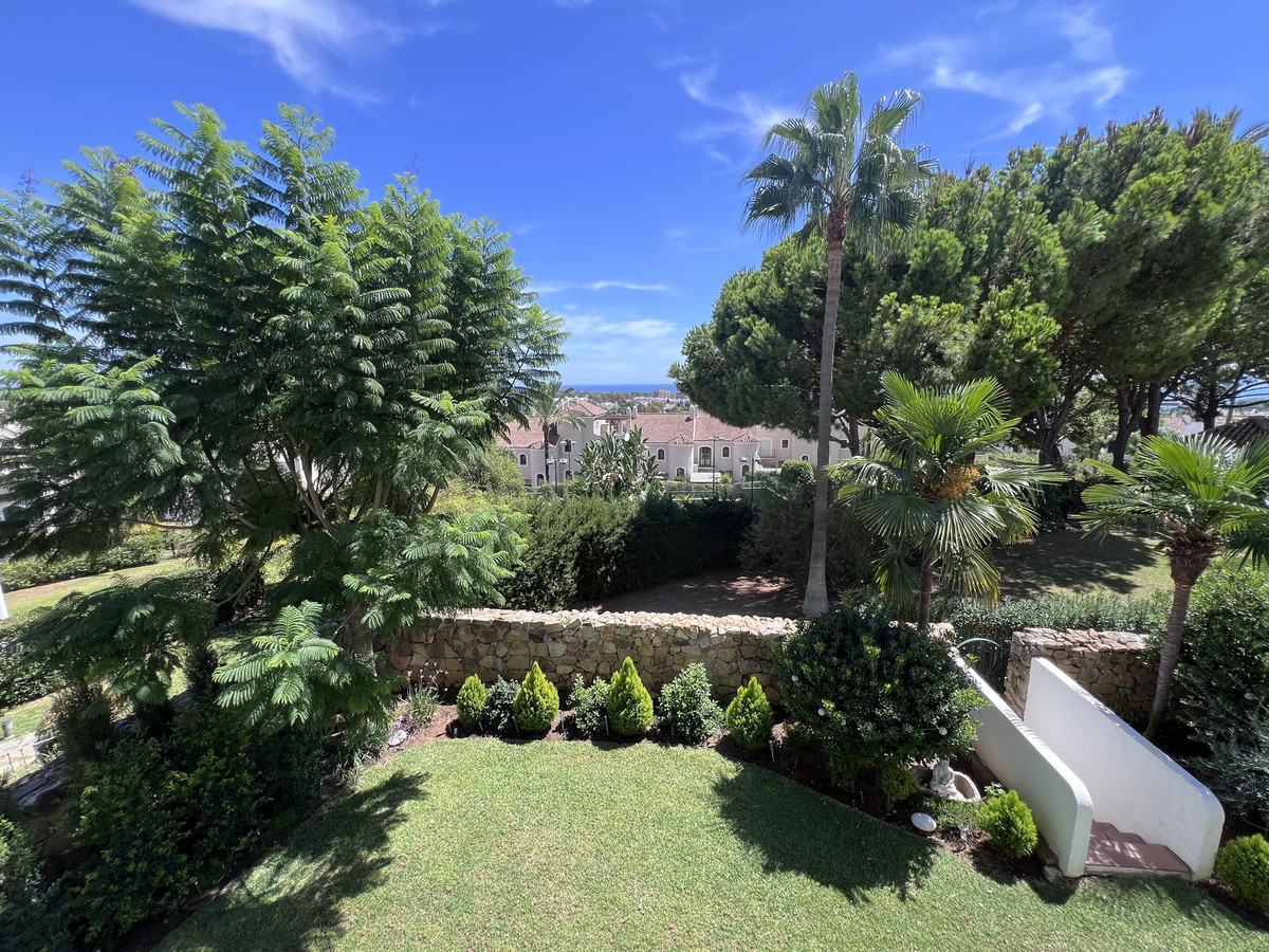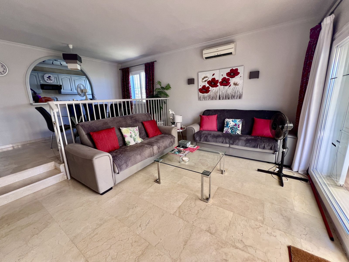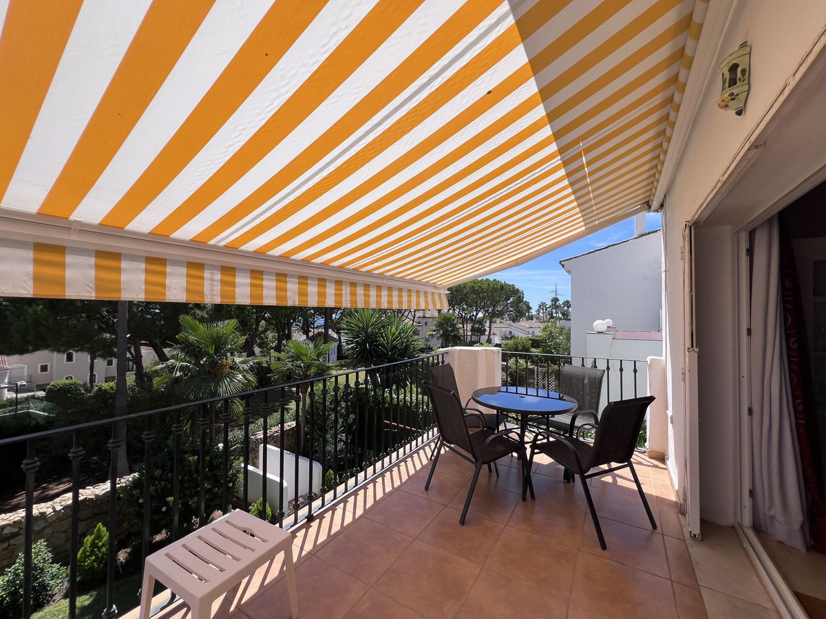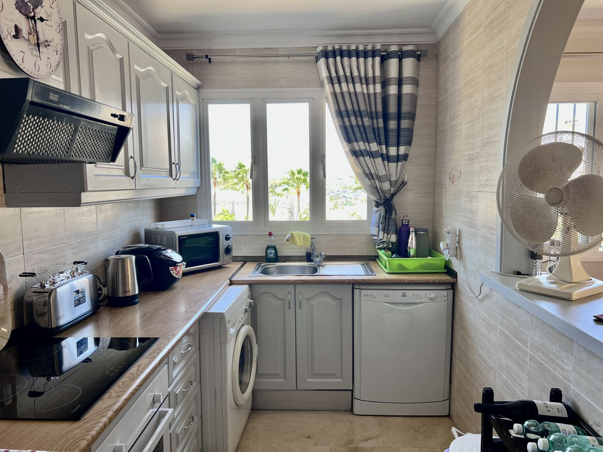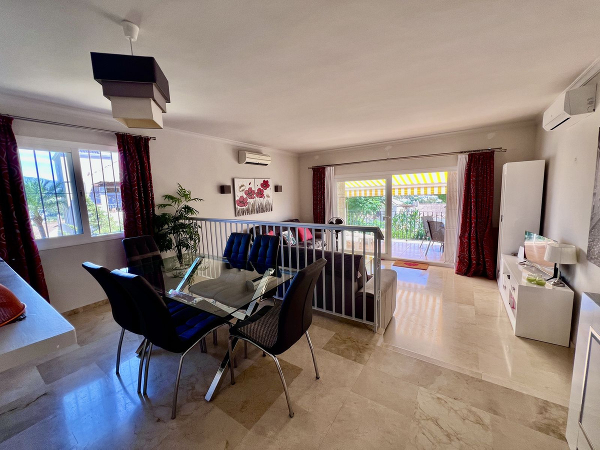 This south facing apartment is in fantastic condition and has beautiful views across the community pool and gardens to the Mediterranean sea and La Concha mountain. The entrance hall leads into a spacious living dining room and a sunny terrace which has plenty of space for dining and relaxing.