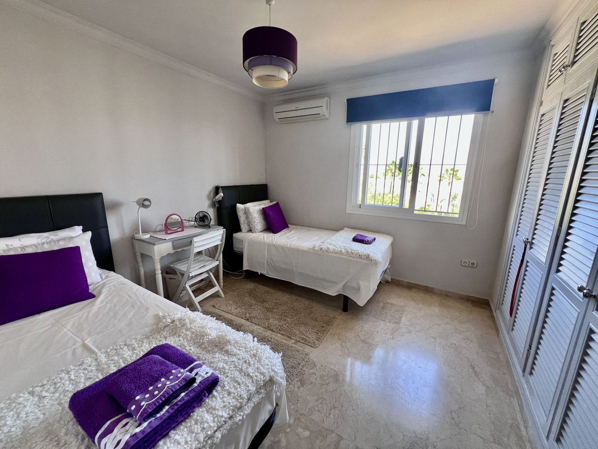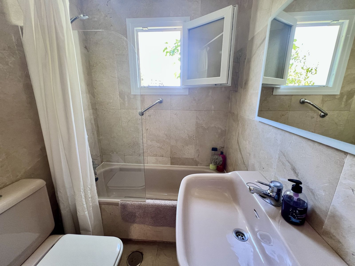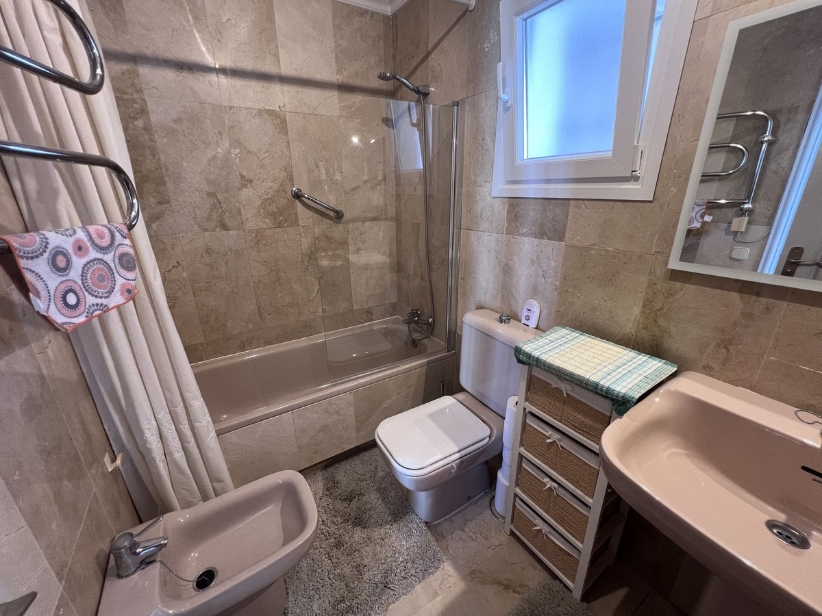 The kitchen is well proportioned and offers views over to the mountains of Marbella. Each bedroom is a large sized double with plenty of wardrobe space. The master bedroom has an ensuite bathroom and small terrace facing south. The second bedroom is located next to the family bathroom and also offers mountain views.