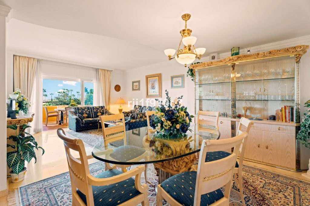 This beautiful corner apartment located in the urbanization Elviria HIlls offers abundant natural light that fills every corner of its 3 bedrooms and 2 bathrooms. Upon entering, you are welcomed by a welcoming hall that leads to a furnished kitchen with an adjacent terrace, perfect for enjoying breakfast with a view. The spacious living and dining room flows harmoniously onto a charming terrace that allows you to relax and contemplate the sea in any season.