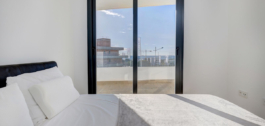 To the right of the entrance, a hallway leads to the private night area, where the main bedroom is with its en-suite bathroom, and a well-appointed bedroom, with an external bathroom, also used as a guest bathroom. Both bedrooms enjoy direct terrace access, abundant natural light, and stunning sea views.