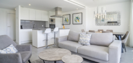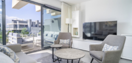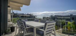 The apartment features an open-plan layout with a bright living and dining area, a fully equipped contemporary kitchen, and direct access to a generous private terrace – the ideal spot to enjoy the sunshine and coastal breezes. The three well-proportioned bedrooms include a luxurious master suite, designed for relaxation and convenience. Fully furnished including outdoor furniture. Proven rental track record.
