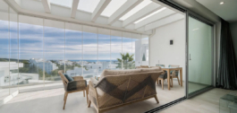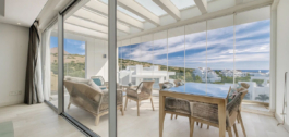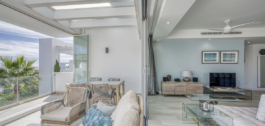 Love at first sight! Large 3 bedroom corner unit in a paradise environment, yet 5mn to all amenities/golf/sea, and the town of Estepona. Situated in the most elevated and private bloc, phase 3 of Alcazaba Lagoon, your senses awaken as you enter, thanks to the wonderful light and layout. The urbanisation is state-of-the-art, with all the amenities you can think of: a private laguna where owners can do all kind of water sports, or relax in one of the white sand beaches; a mediterranean restaurant and a beach bar; a gym and mini market; jacuzzi and sauna; and of course swimming pools, a massive garden, and hiking trails. The size of the living room is really spectacular, and the extensive fully-equipped open kitchen blends in perfectly. The 44m2 wrap around terrace has open views towards the sea and garden on one side, and to the Estepona mountains and a protected agricultural land on the other. The owner has installed glass curtains to create a chill-out area, which can be opened or closed. The sleeping area consists of 3 wide bedrooms (one has been converted to an office), and 2 full size bathrooms. The owner has just finished a substantial renovation and refurbishment, including a brand new kitchen, ventilators, terrace, furniture, custom-made curtains … Ready to move into. The price comes with two underground private parking spots, and a huge fitted storage room. A must see!!