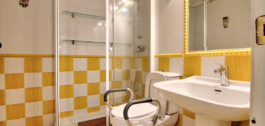 The living-dining room and kitchen are connected by a breakfast bar, and the kitchen is fully equipped with appliances, including a dishwasher. From the living room, we have access to the L-shaped terrace with side views of the sea and parks. The street is pedestrianized, so you won't be bothered by traffic noise.