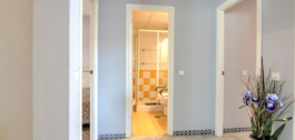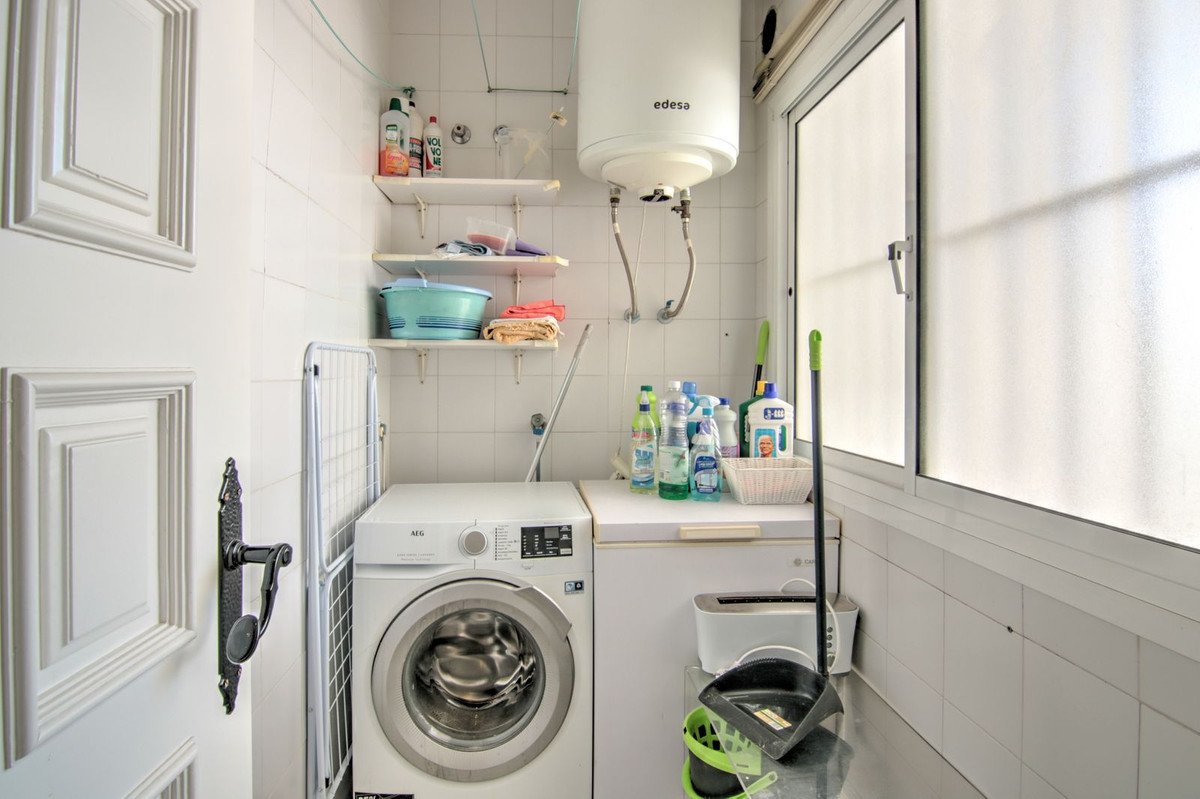 The apartment is distributed as follows: upon entering, we find a hallway with a laundry room on the right. We continue through the hall, which contains two double bedrooms with built-in wardrobes that share a bathroom, and the master bedroom (a huge one with an ensuite bathroom and access to the terrace).