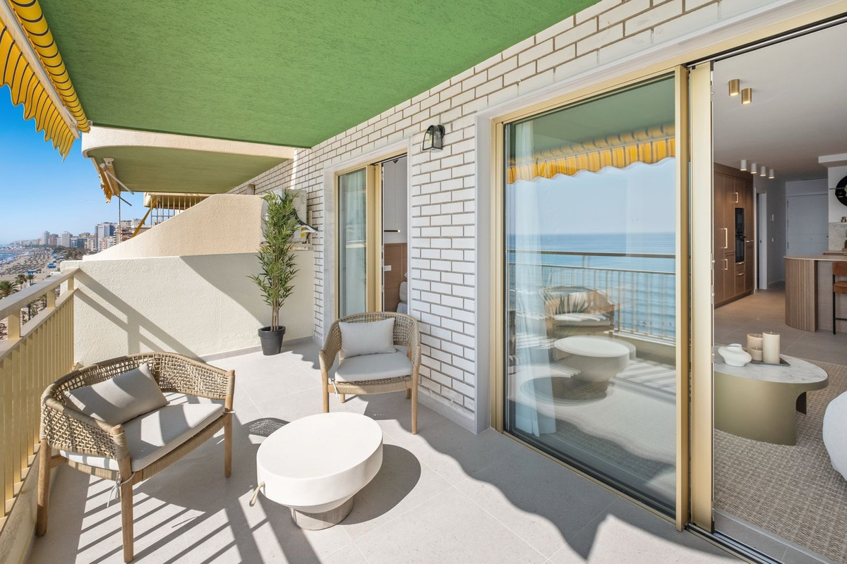A spacious terrace offering front-row views of the sea and Fuengirola’s vibrant Paseo Marítimo