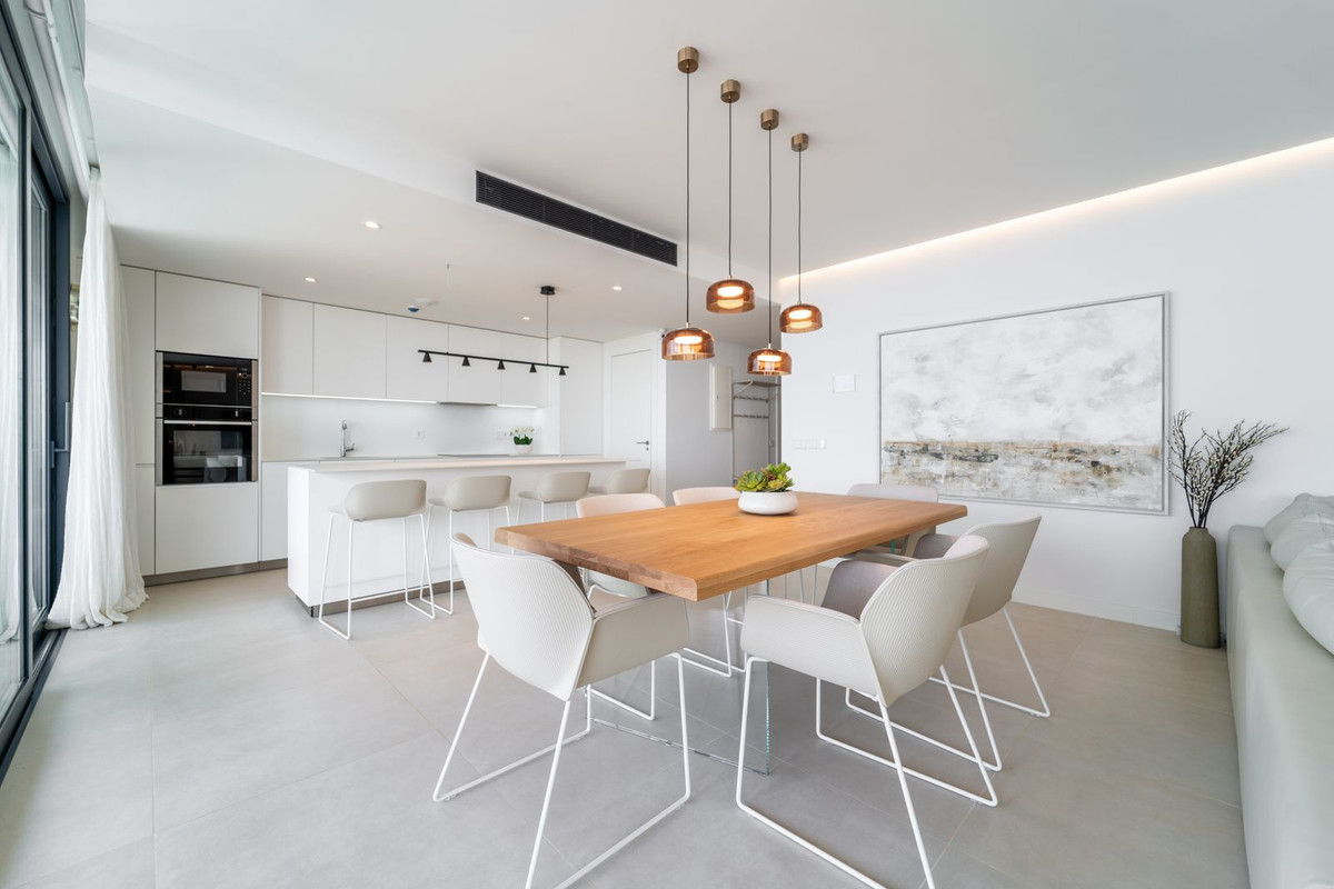 Luxury south facing apartment, in the exclusive urbanization of Higuerón West, with 3 bedrooms, 2 bathrooms and guest toilet, spacious living-dining room, open plan kitchen fully furnished and equipped with electrical appliances, laundry area with washing machine/dryer, large terrace of 41m2 with panoramic sea views.