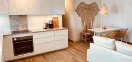This apartment was completely renovated in a Boho Ibiza style, featuring a bright white and natural wood design that creates a warm, modern, and relaxing atmosphere.