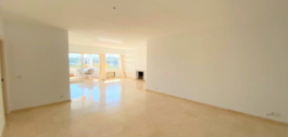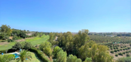 Impressive top-floor apartment surrounded by golf courses, with beautiful panoramic views. The home features a spacious and bright entrance hall, a 60 m² living-dining room with a fireplace and direct access to the terrace with open views of the sea and golf courses. There are 3 double bedrooms with en-suite bathrooms, all with large built-in wardrobes, a fully equipped kitchen, and a laundry area.