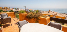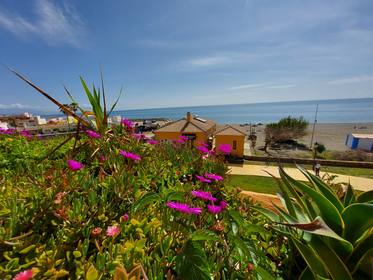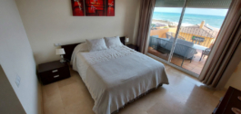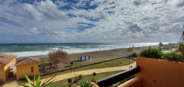 Urb. Los Granados – Sought after front line Beach development. A well presented modernised (new top of the range kitchen) front line beach 2 bedroom corner apartment with uninterrupted beach and sea views from the terrace. The complex is located on the beachfront with a large lagoon style swimming pool set in spacious grounds. The complex also has underground parking, 24hr security and is a short walk along the beach to the fishing village of Castillo and Duquesa marina.