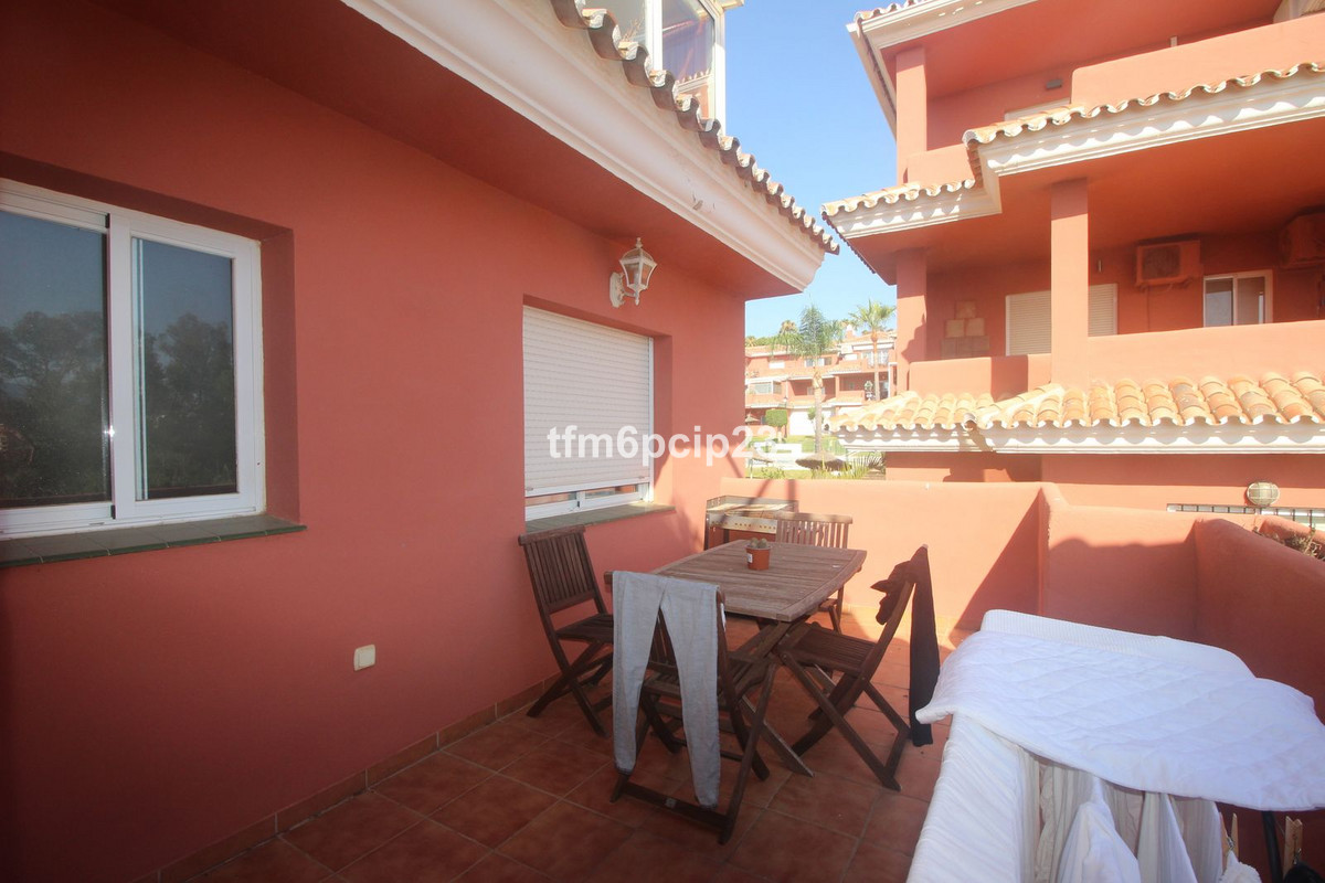 This delightful 81 m² middle-floor apartment is located just a few minutes from the beautiful Puerto de la Duquesa. It boast a spacious 22 m² private terrace with garden and views to Estepona. It Feature's 2 bedrooms and 2 bathrooms (including an ensuite), this fully furnished property is in good condition, showcasing marble flooring, fitted wardrobes, and double glazing. The fully fitted kitchen and communal amenities, including a pool, garden, and parking, enhance its appeal. Ideally located close to golf, the port, sea, al within a secure gated complex, this east-facing resale apartment is perfect for coastal living. Utilities include electricity and drinkable water. Ready to move in and enjoy!