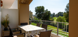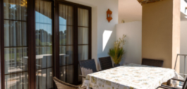 The apartment is bright, spacious, and filled with natural light, featuring sunlit terraces that open toward the greens, offering uninterrupted golf views and a tranquil atmosphere ideal for relaxation or outdoor dining.