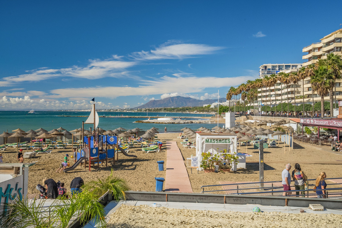 Our unique beachfron apartment is located in the most popular areas of Marbella town, right on the promenade, just a minute walking distance to any amenities as restraunts, bars, supermarkets, farmacies and more.