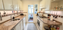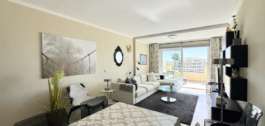 The generous terrace invites you to relax in the sun with views of palm trees, greenery and the sparkling sea. South facing so sun from morning to afternoon, and shutters are available as protection against the heat if needed. There is air conditioning in both bedrooms and the living room, and underfloor heating throughout the apartment except for the kitchen. The price also includes a private parking space in the garage and a practical storage room, and for guests there is a large outdoor parking space within the gated community.