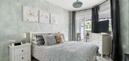 Furthermore, you will be able to enjoy a large terrace as well as spacious gardens and a communal swimming pool to cool off on hot days.