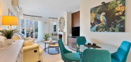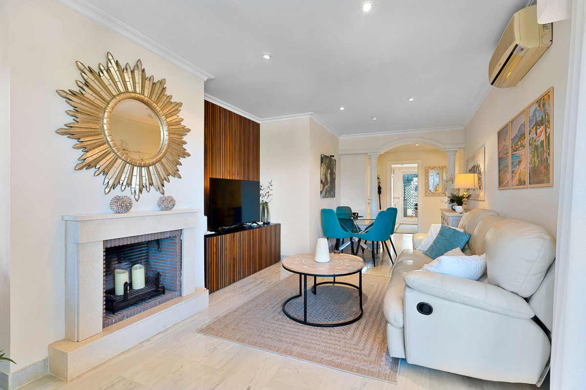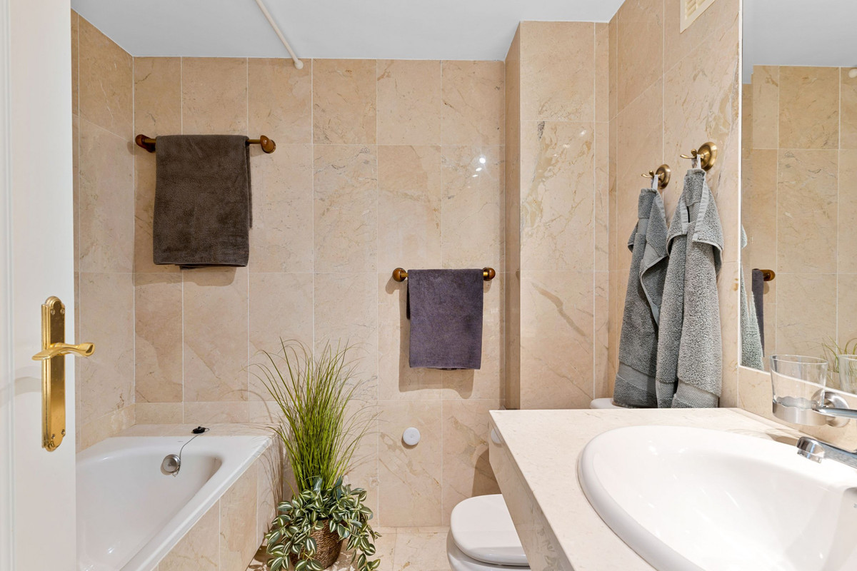 This apartment is located in Señorio de Aloha, Nueva Andalucia, Marbella, Malaga. It offers two bedrooms and two bathrooms, including one en-suite. The property has a built area of 99m² and a private terrace of 20m². It is set within a gated community, providing both security and peace of mind.