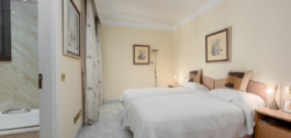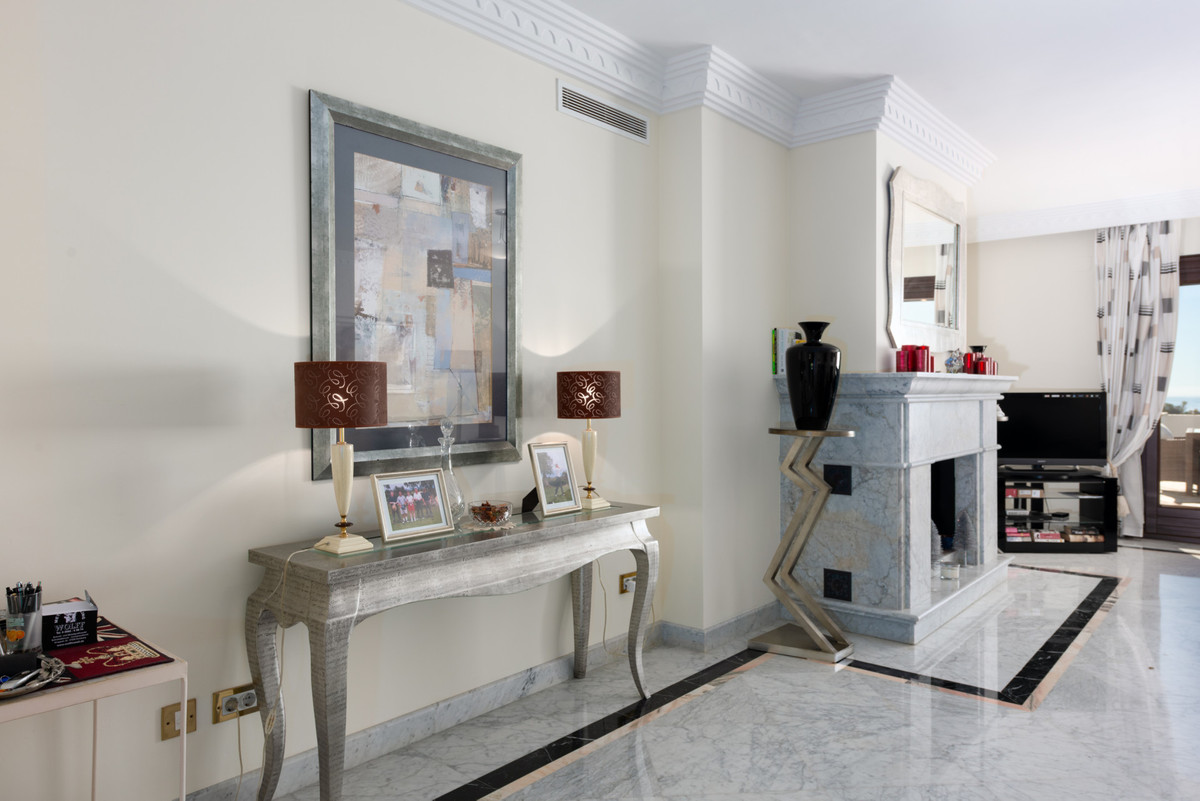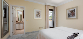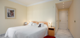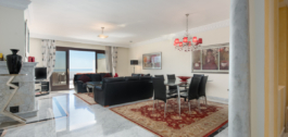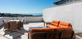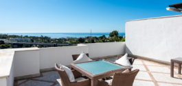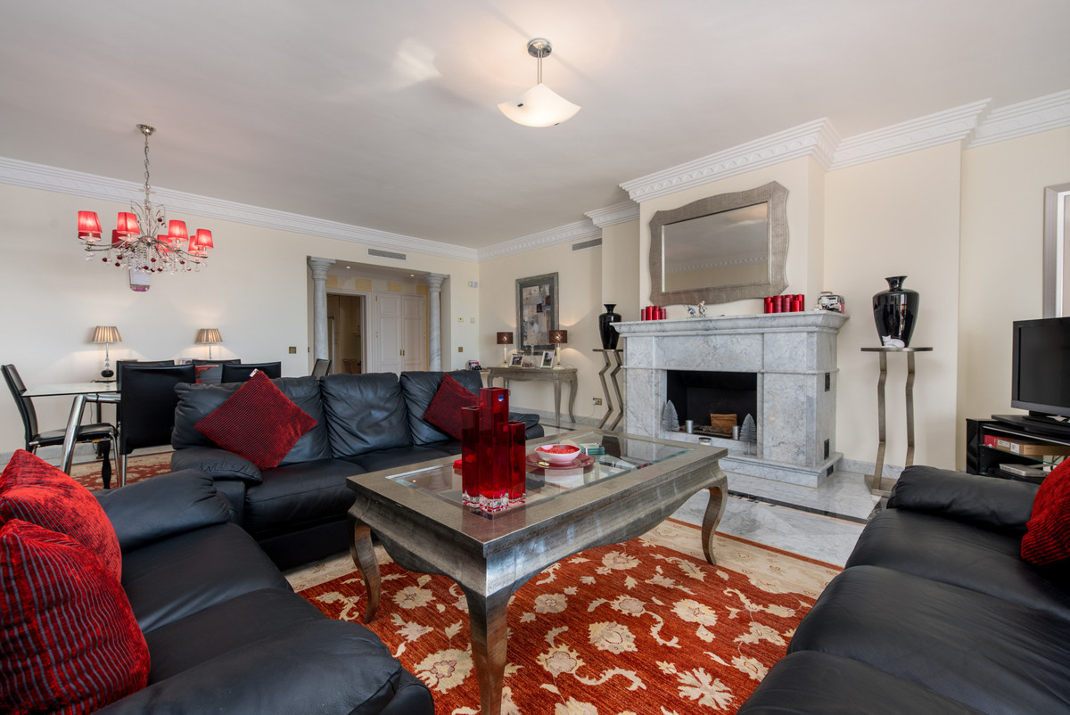 Spacious first floor apartment with panoramic sea views, three double ensuite bedrooms, a large lounge, separate kitchen and utility room, as well as a large terrace. Centrally located within a high end urbanisation within walking distance of the amenities of Marbella old town, in one of the best areas of the Costa del Sol, the apartment boasts impressive views, and oversize rooms throughout.