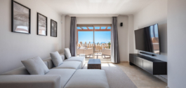 This luxurious single-level penthouse offers stunning panoramic views of the sea and mountains. The property features an entrance hall leading to a spacious living and dining area, which opens onto two terraces: one facing southeast with views of La Concha mountain, the Atalaya Golf Course, and the Mediterranean Sea; the other facing south/southwest, showcasing sweeping vistas of the sea, Gibraltar, and the North African coastline.