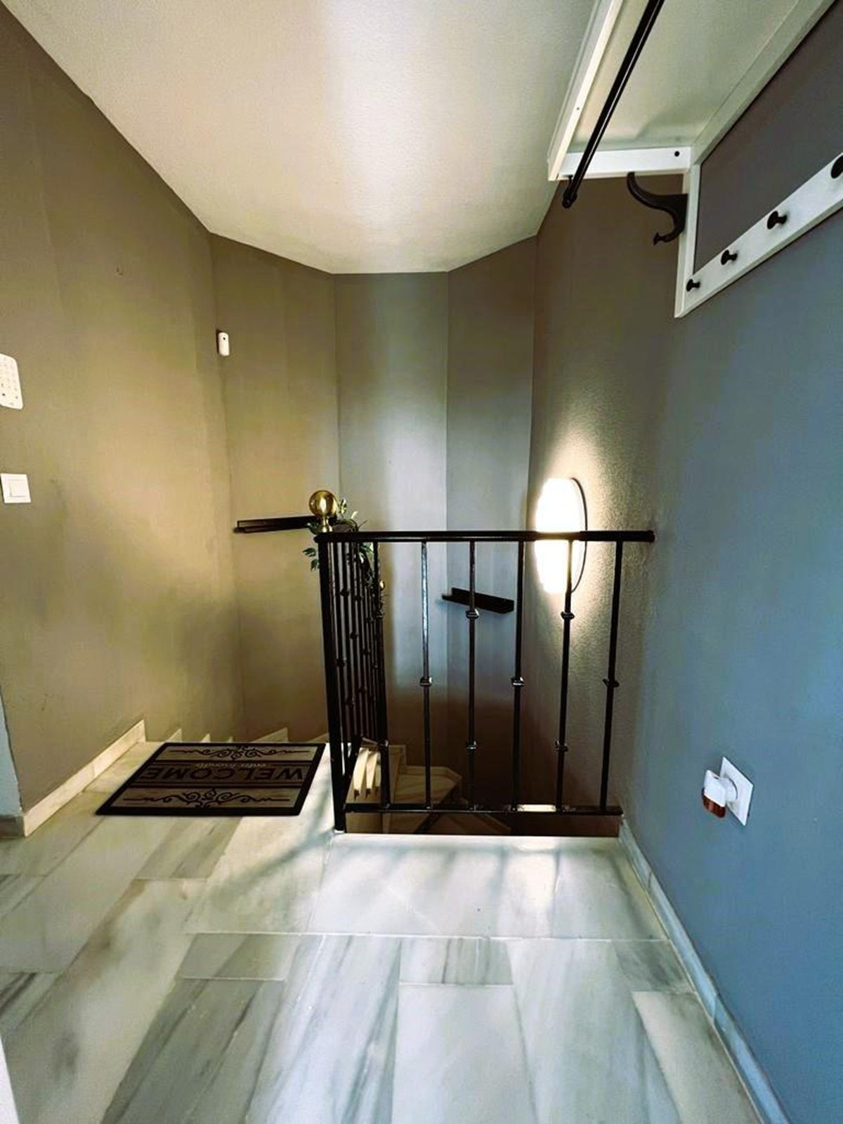 There are two private terraces: one shared by the bedrooms and another connected to the living room, with a staircase leading to a sunny solarium, ideal for relaxing and enjoying the stunning panoramic sea views.
