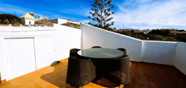 For sale: bright 2-bedroom penthouse duplex with spectacular views of the Mediterranean Sea. The property offers a spacious living-dining room, a separate kitchen with a serving hatch, a master bedroom, a second bedroom, and a full bathroom.
