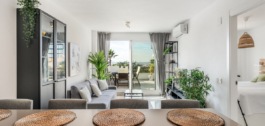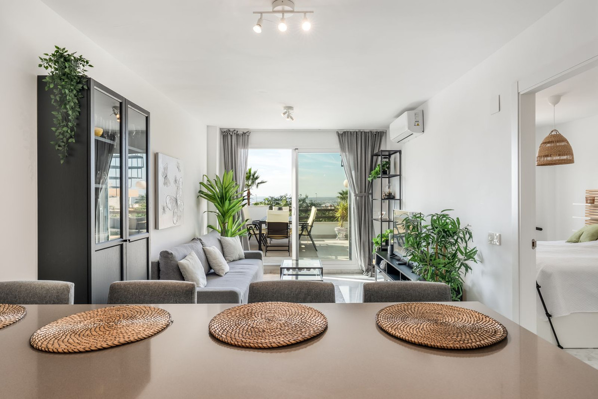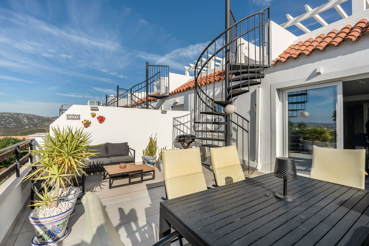 Welcome to this charming home with 2 bedrooms and 2 bathrooms, a place where tranquility meets beautiful views. Enjoy a sunny terrace off the living room and a private rooftop terrace with sweeping panoramas of the sea, mountains, natural surroundings, and the prestigious Finca Cortesin area.