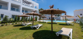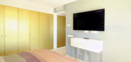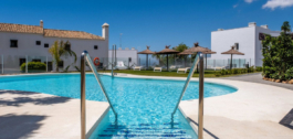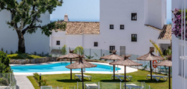 The complex is modern, with clean lines and a lovely swimming pool area, where one can spend a relaxing morning or afternoon in the sun or under a tropical-style parasol. The gardens boast mature vegetation, like olive trees, that offer a lovely natural shade during the summer heat. Residents also have access to a clubhouse featuring a gym with weights and other equipment, a large TV for watching sports or movies, a lounging area for parties and gatherings, a fully equipped kitchen, a bathroom, and a lovely terrace with a dining table. The area is one of the safest in Marbella; still, the community is gated and has security cameras throughout the property.