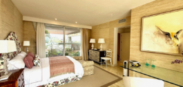 The exclusive community offers tropical gardens, swimming pools, tennis courts, and direct beach access.
