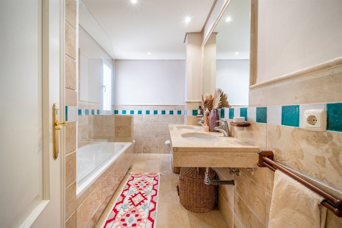 Step into this well kept two level, 3 bedroom, 2.5 bathroom duplex apartment in the exclusive La Quinta area of Benahavis, a true gem offering comfort, privacy, but still with scope for improvement. This well established, gated urbanisation is frontline golf and is ideally located surrounded by golf courses, close to schools and amenities and only a few minutes drive into both San Pedro Town and Benahavis Village. The well maintained communal gardens, and the beautiful pool, are shared by only 36 properties making this a true oasis.