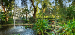 Beautiful tropical gardens with two swimming pools, a waterfall, a small lake with turtles, and a BBQ area.