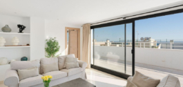 A very special penthouse situated 2nd line to the beach right in the centre of Estepona. The penthouse and terraces occupy the whole of the 6th floor on this building making it one of a kind and very private. The good size living and dining room have access straight out onto the southern part of the terrace with sea views but here comes the beauty, from here you can practically walk around the whole penthouse giving you amazing views in all directions especially over the old town towards the Sierra Bermeja Mountain range. The size of the terrace makes it possible to maximize your outdoor living and at the same time have a change of scenrio when you so desire. This is a truely unique property and has to be seen to be fully appreciated. Please note that the apartment is appr. 100m² constructed plus 187m² of terrace.