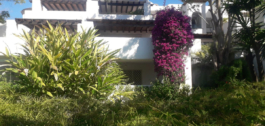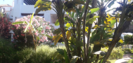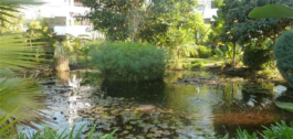 An amazing tropical garden surround the large communal pool.