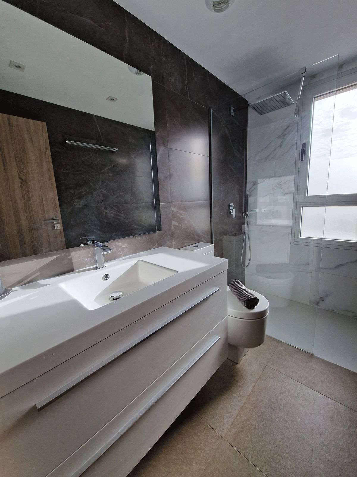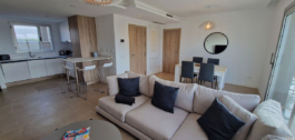 FRONT LINE GOLF PENTHOUSE WITH SEA VIEW!! No other apartment at that floor! This beautiful brand new three-bedroom penthouse stands out for its contemporary style and quality design, it is built with the latest materials and amenities: ceramic floor with large tiles (60×60 cm) from the SALONI brand, in the spacious living room is the kitchen Open built-in with appliances, the two bathrooms with sanitary quality, LED lighting, hot and cold air conditioning and solar panels with the best thermal and acoustic insulation. It is a bright penthouse with lots of natural light and large terrace to enjoy the sun all day long and the beautiful view of the golf courses throughout the day and the sea.