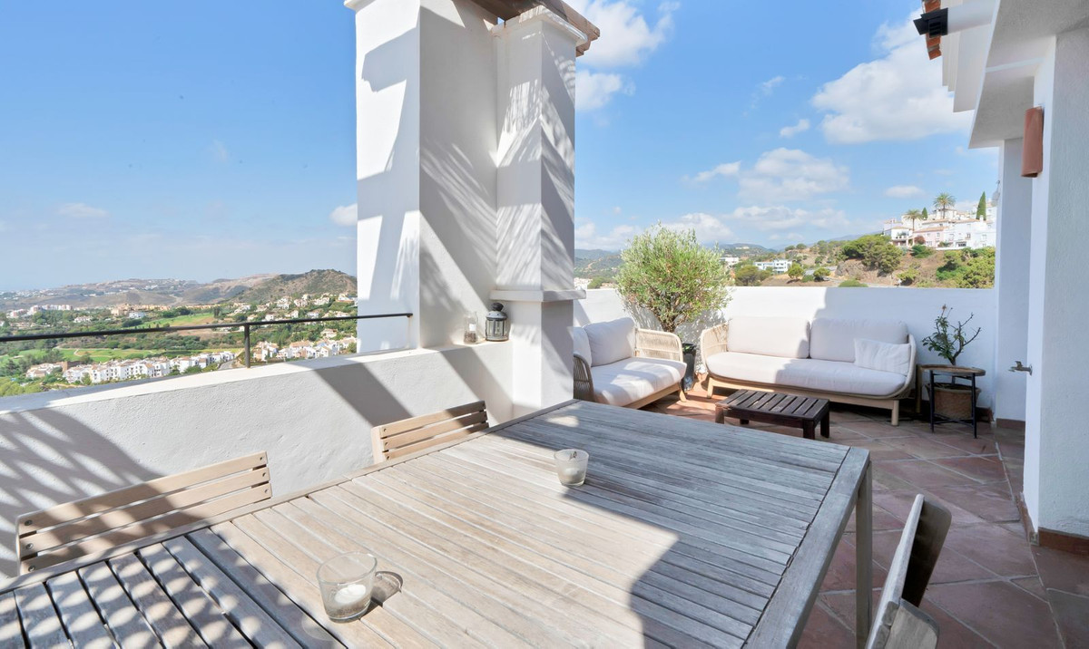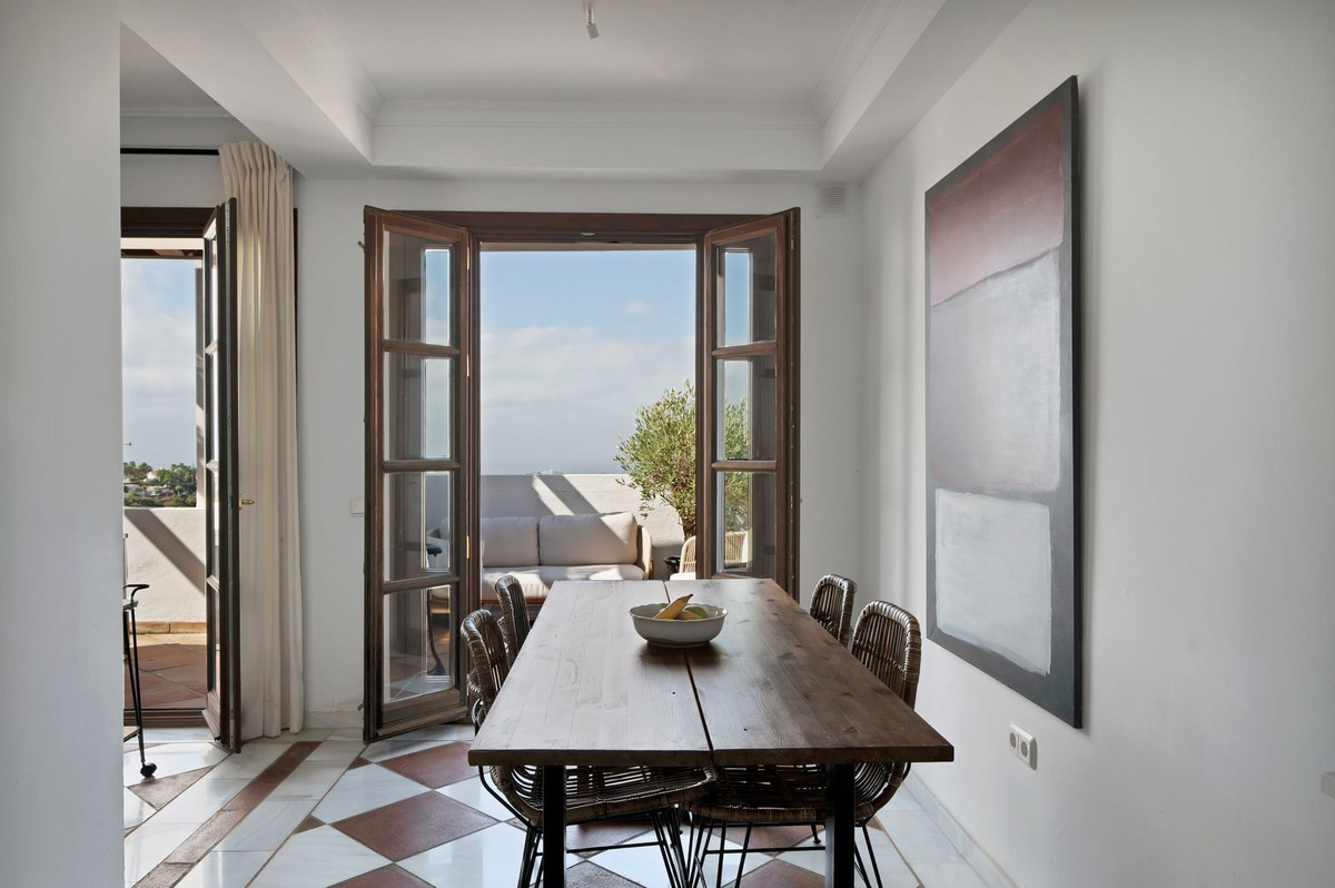 Discover paradise in this stunning penthouse for sale in the prestigious La Heredia residential complex! With 360-degree panoramic sea views, this home is a perfect retreat for those seeking tranquillity and beauty. The complex, designed like a charming village, is just 10 minutes from the centre of San Pedro de Alcántara and the beach, and 15 minutes from Marbella. Surrounded by outstanding golf clubs such as Los Arqueros and La Zagaleta, this location is ideal for sports and nature lovers.